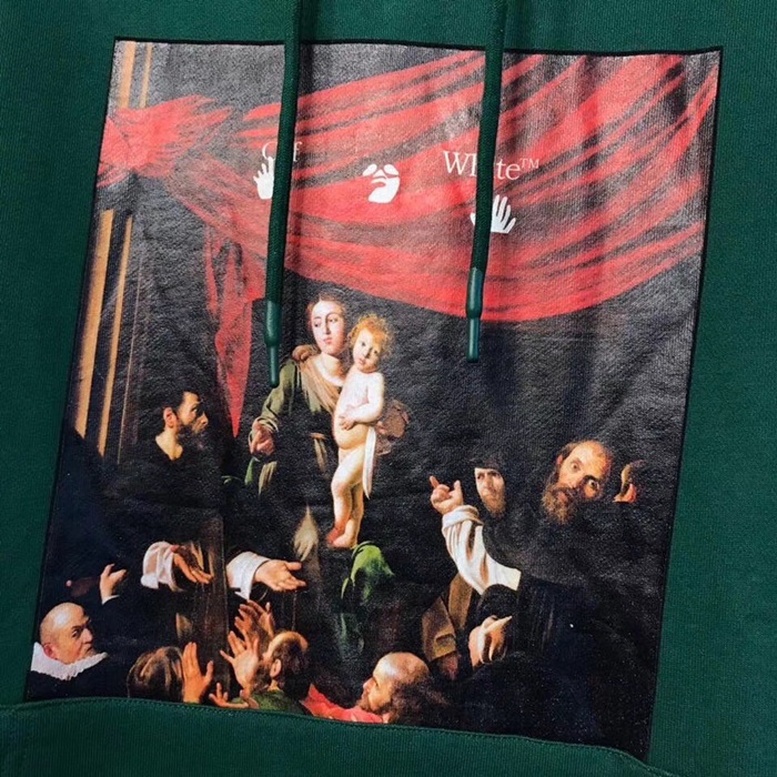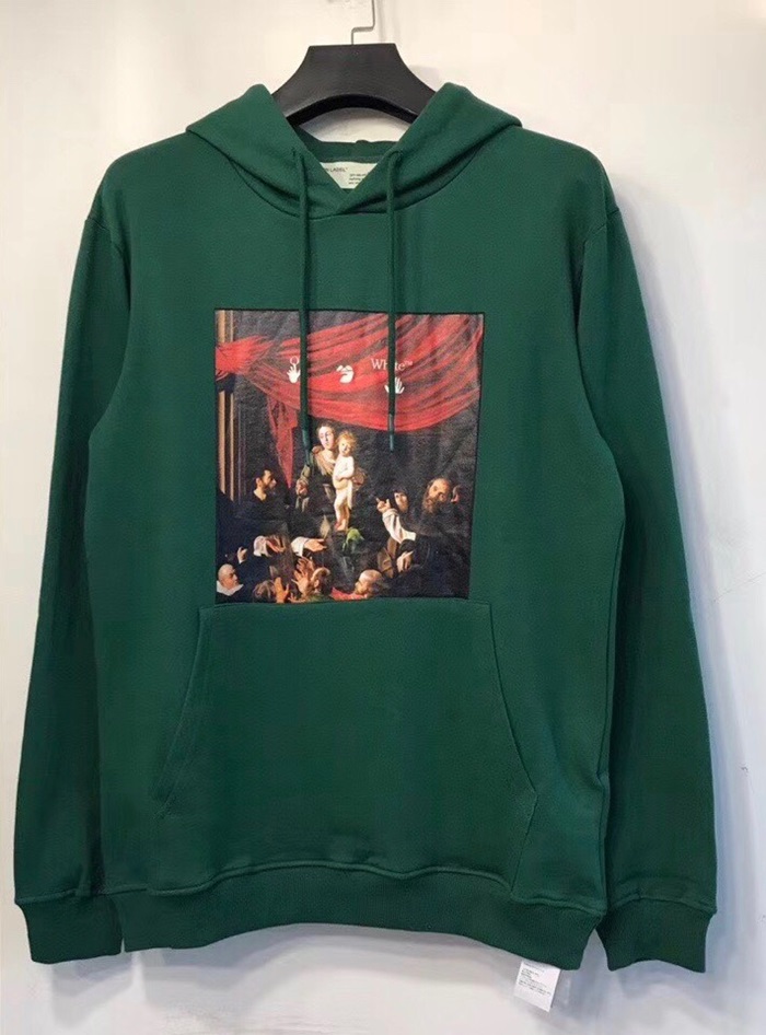 オフホワイト-オフホワイトメンズコットンジップアップフーディf0533グリーン