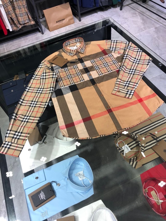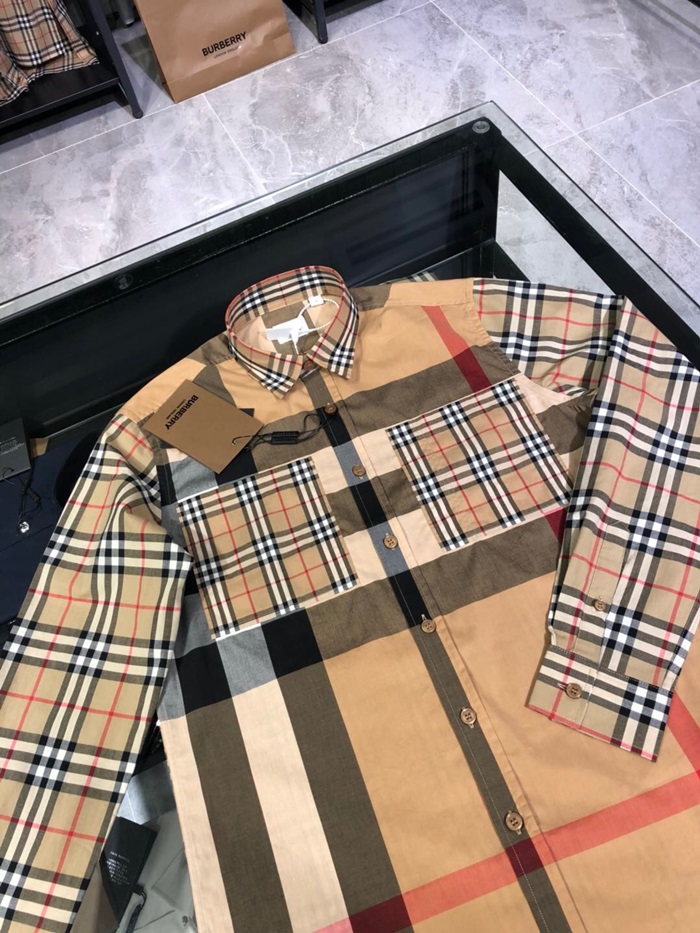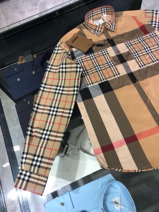 バーバリーバーバリーメンズヴィンテージベーシックコットンシャツr02890.ブラウン
