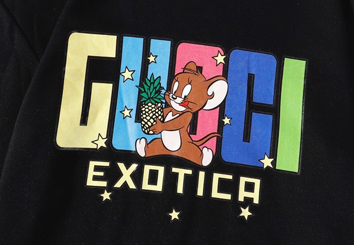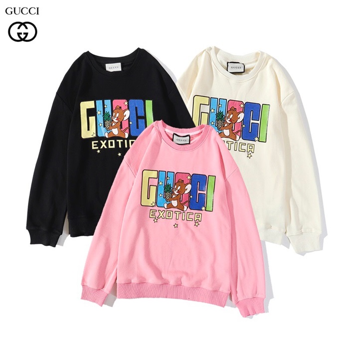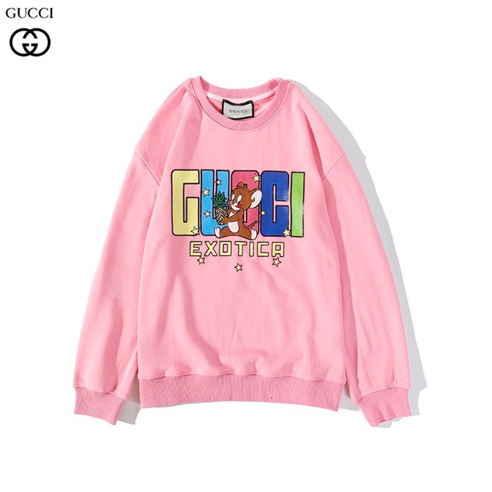 グッチ-グッチユニセックスコットンクルーネック長袖Tシャツc03032.ピンク