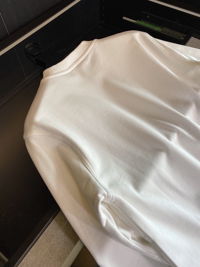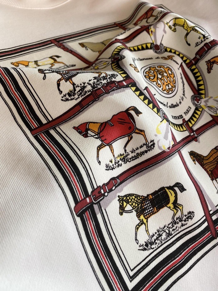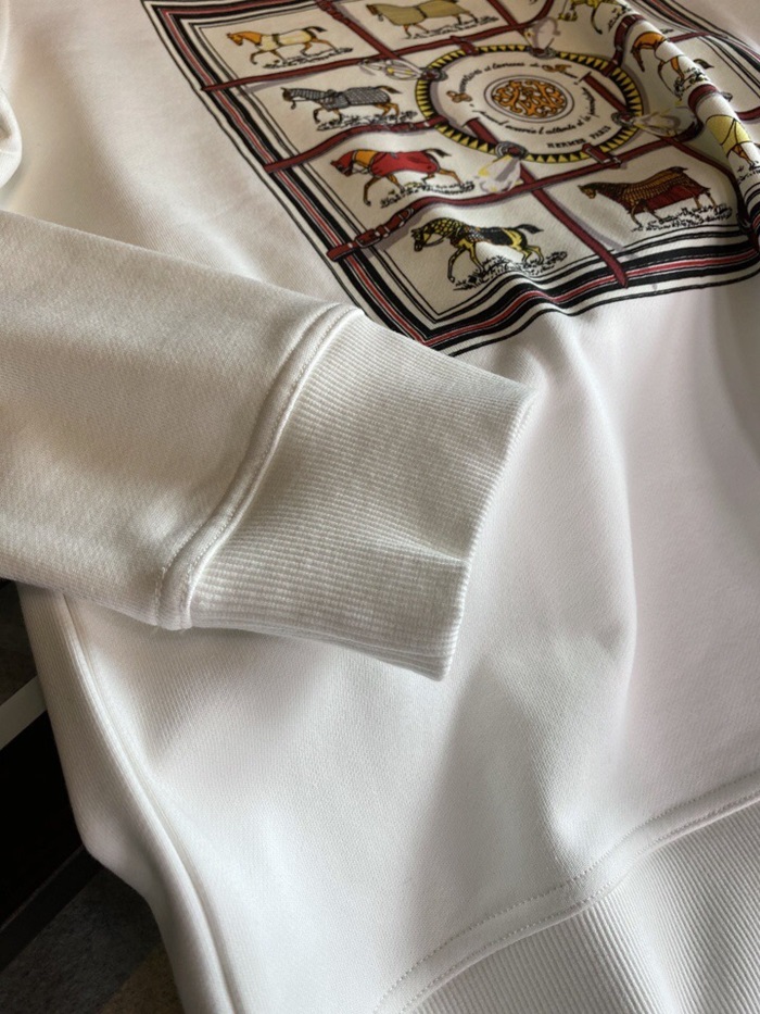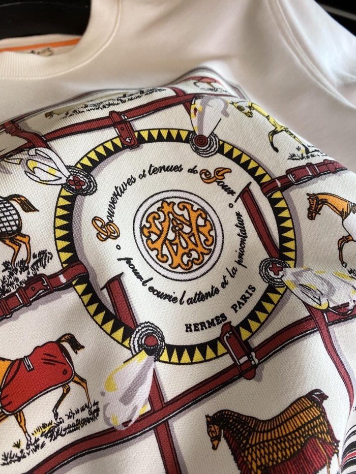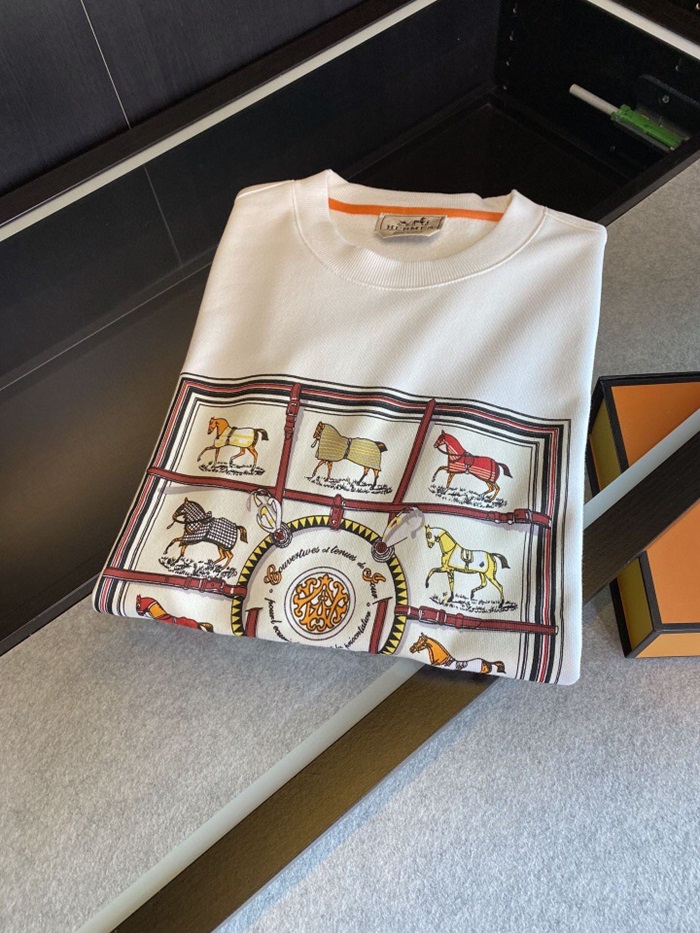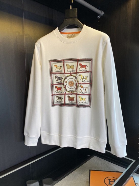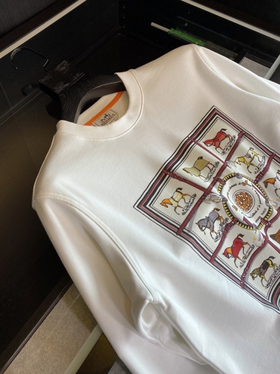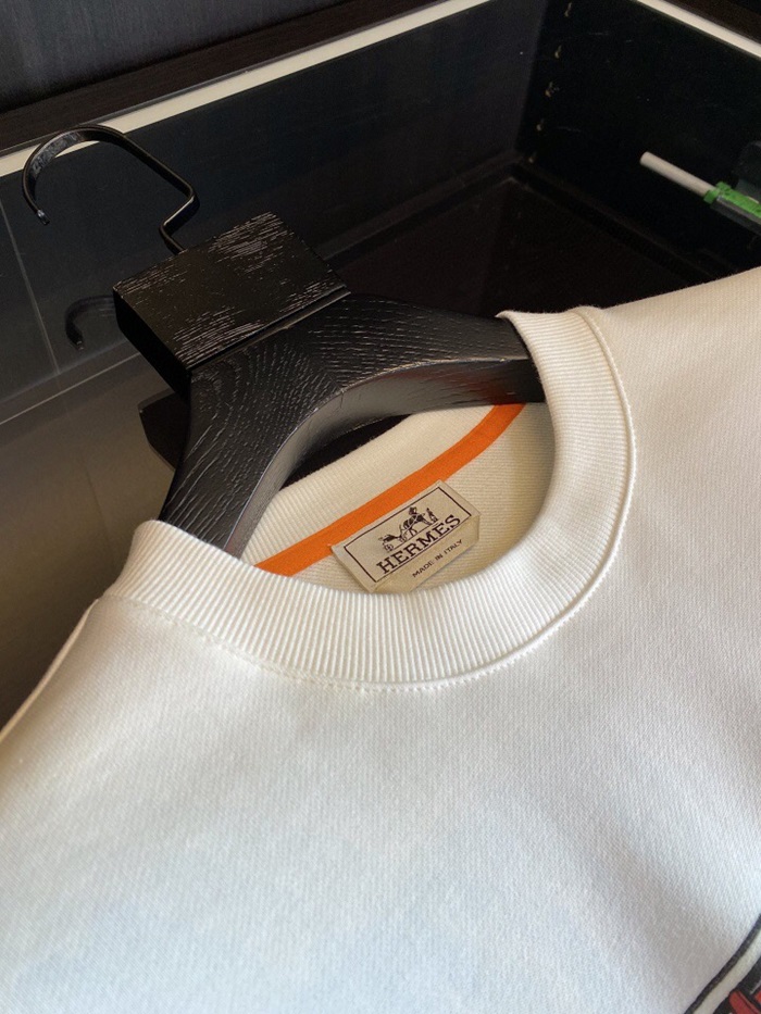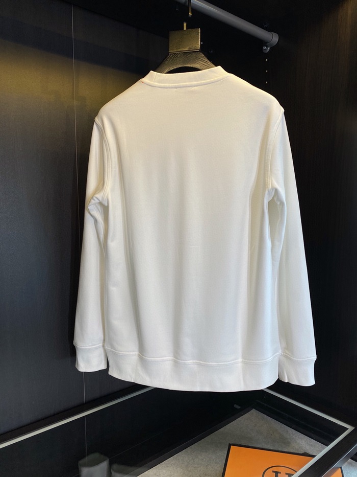 -エルメスメンズクルーネックカジュアルコットン起毛長袖Tシャツr0519ホワイト