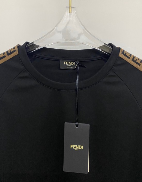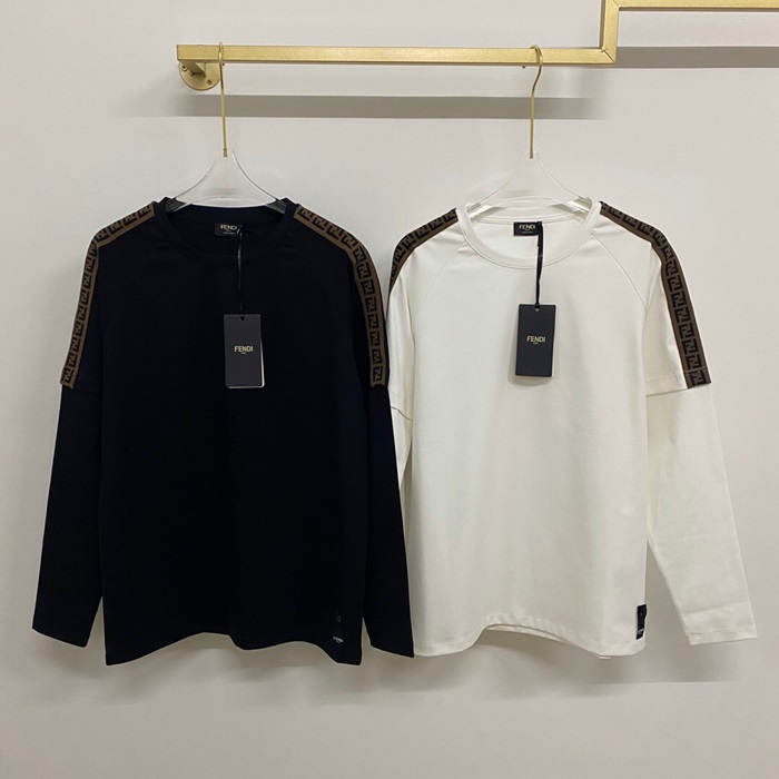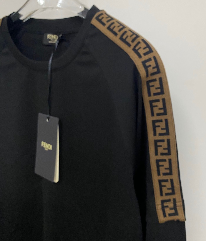 ェンディ-ェンディメンズクルーネック長袖Tシャツn0815ブラック