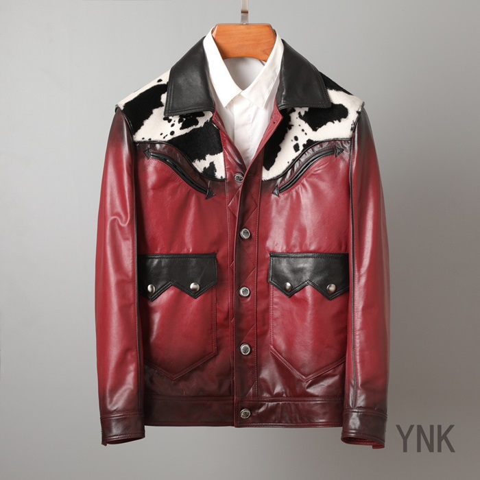 サンローランメンズカジュアルフランネルレザージャケットl0087レッド
