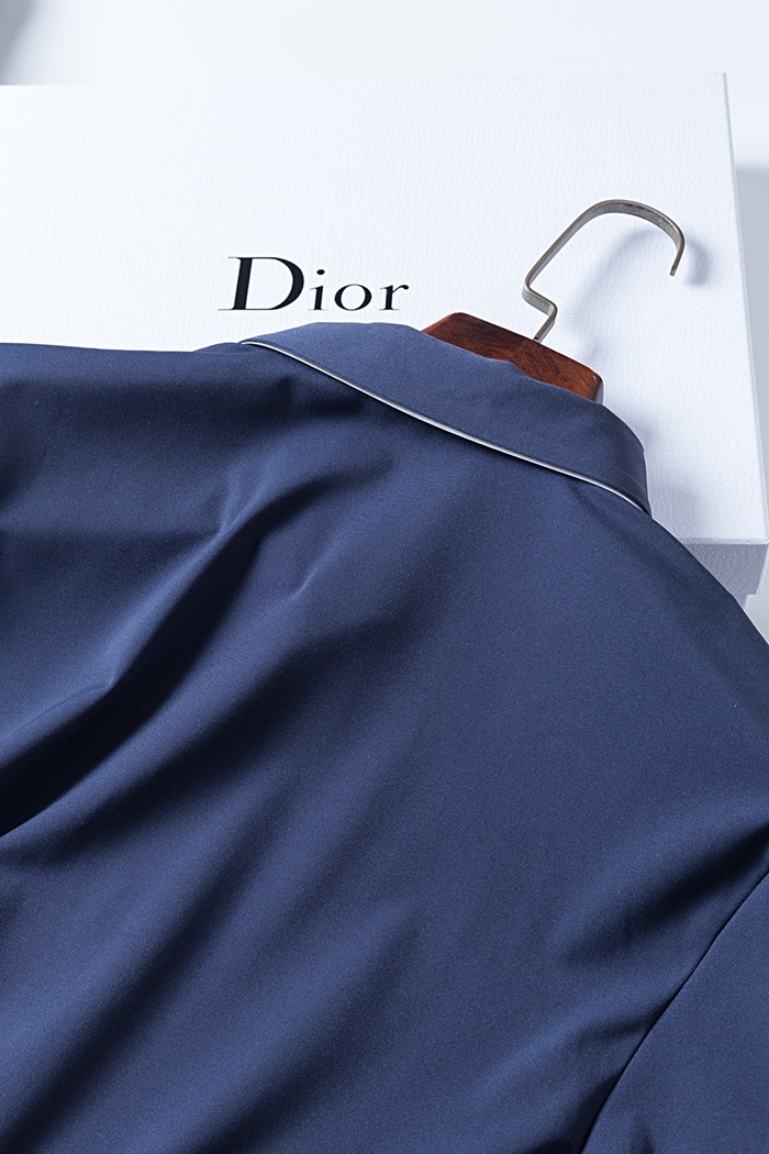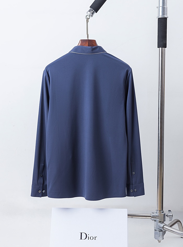 ディオールディオールメンズカジュアルコットンポロ長袖Tシャツo0858ブルー