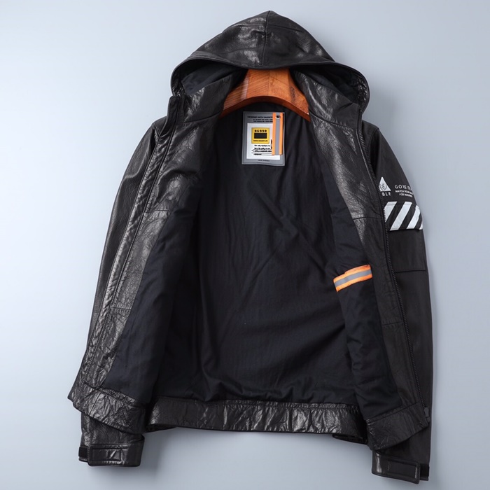 オフホワイトオフホワイトメンズカジュアルレザージャケットf0563ブラック
