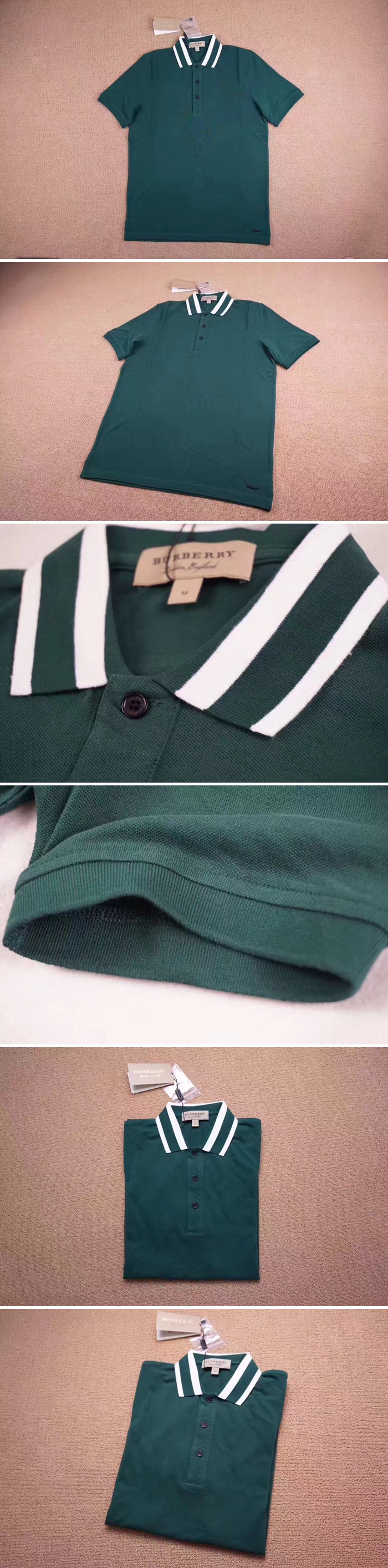 バーバリーバーバリーストライプカラー"コットンピケグリーンメンズポロシャツb0010