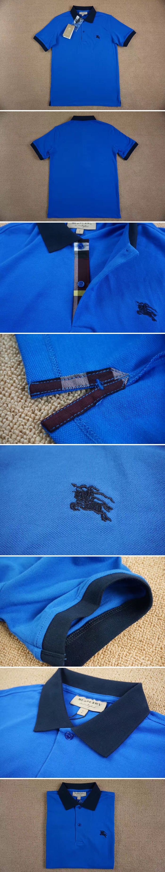 バーバリーツートンチェックプラケットコットンピケポロシャツブルー40505131メンズポロシャツb0014