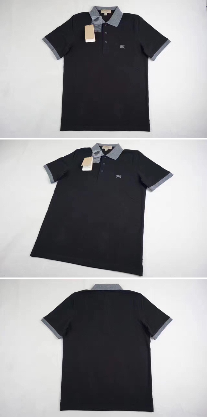 バーバリーツートンチェックプラケットコットンピケポロシャツブラックメンズポロシャツb0015