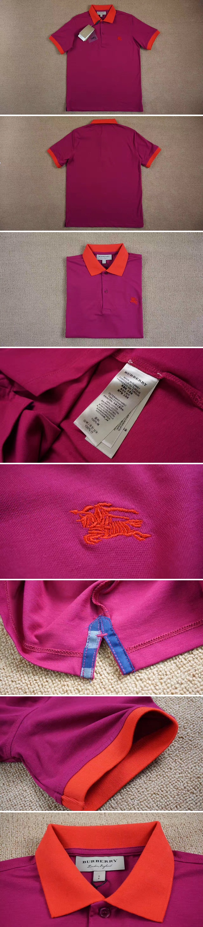 バーバリーツートンチェックプラケットコットンピケポロシャツローズ40505161メンズポロシャツb0016