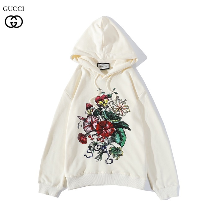 グッチグッチユニセックスカジュアルオーバーサイズコットンフーディc03126.ホワイト