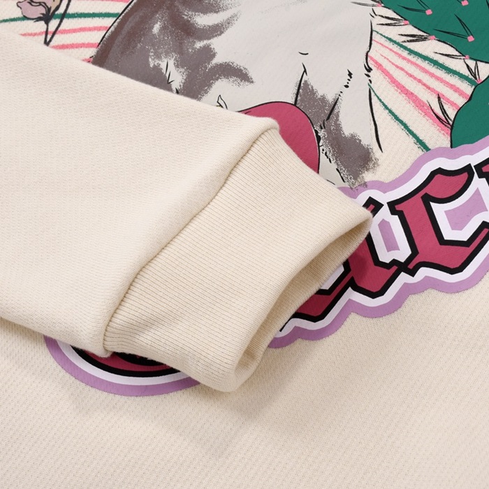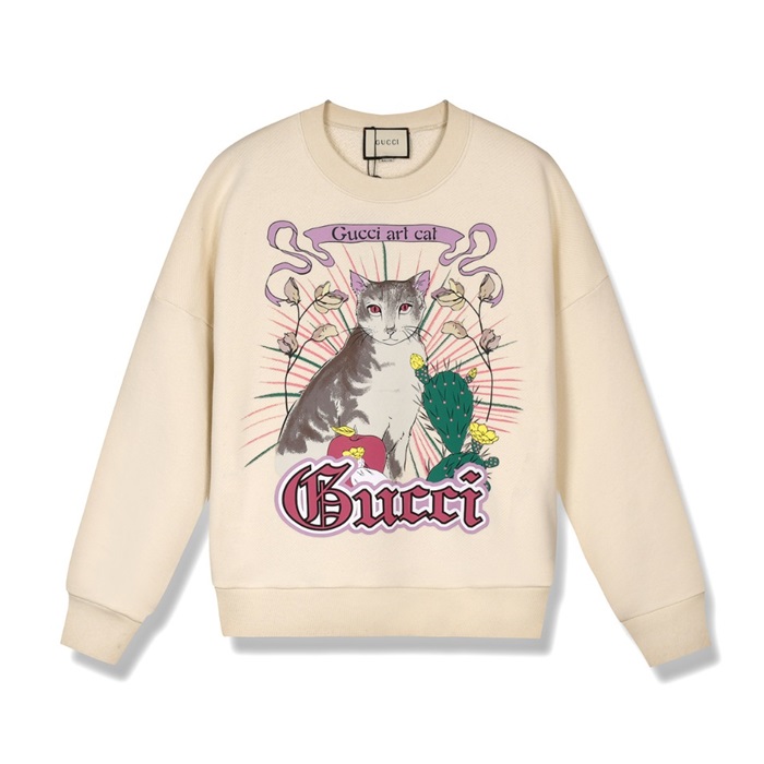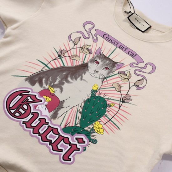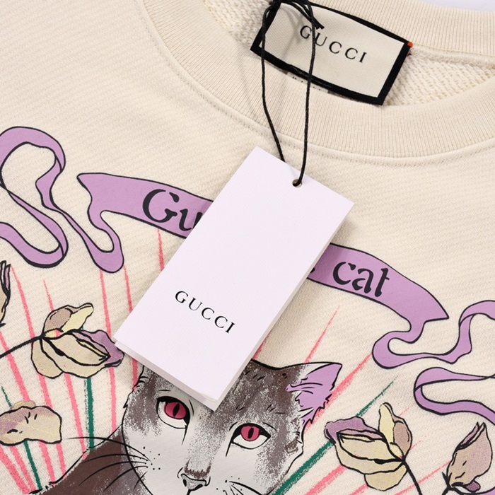 グッチ-グッチユニセックスコットンクルーネック長袖Tシャツc03135アイボリー