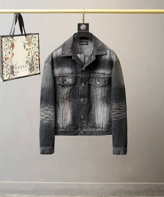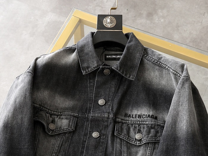 バレンシアガバレンシアガユニセックスカジュアルデニムジャケットl0842.ブラック