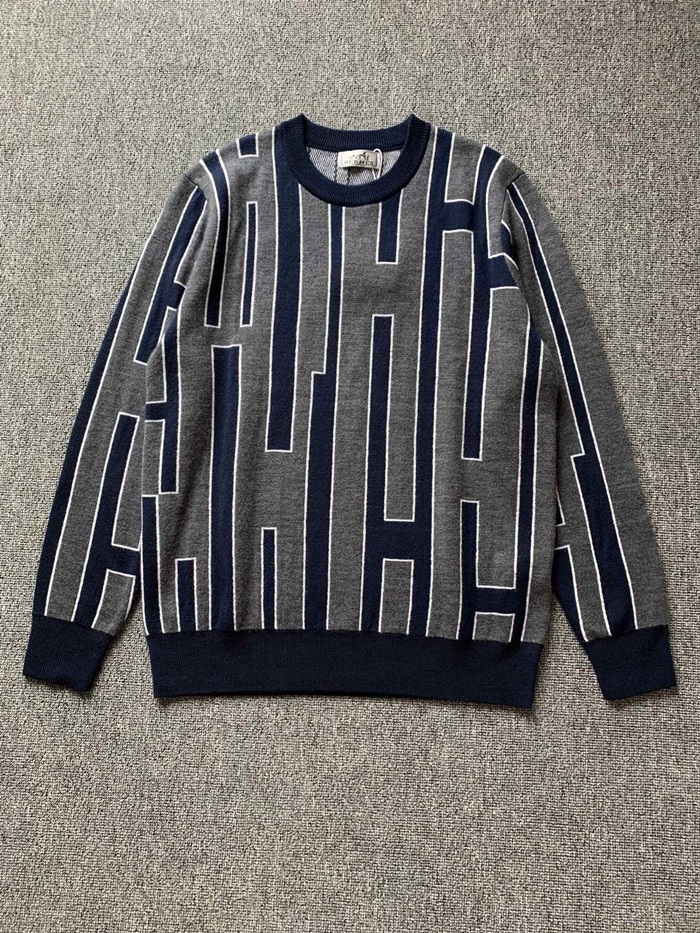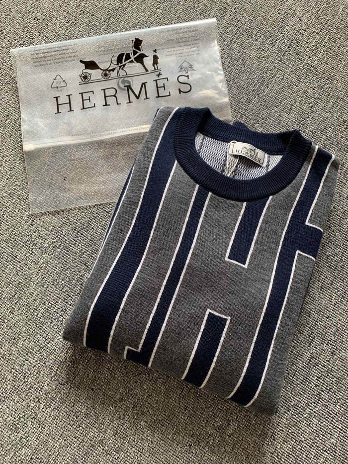 エルメス-エルメスメンズクルーネックウールセーターr0539グレー