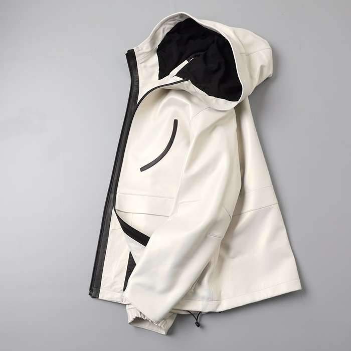 モンクレールメンズパッチモダンレザージャケットc01917アイボリー