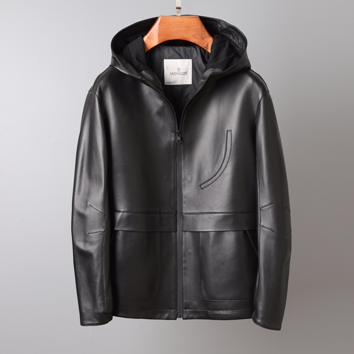 モンクレールメンズパッチモダンレザージャケットc01918ブラック