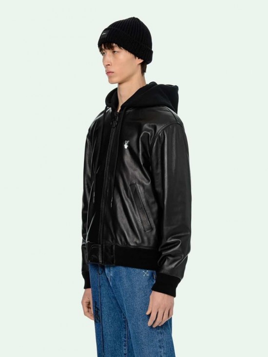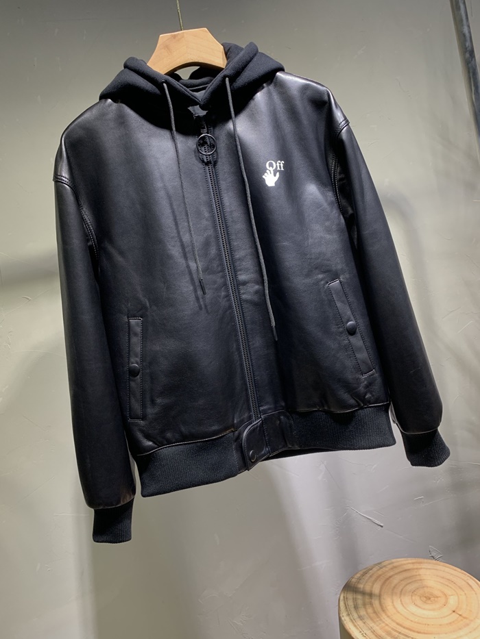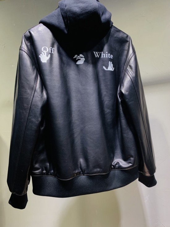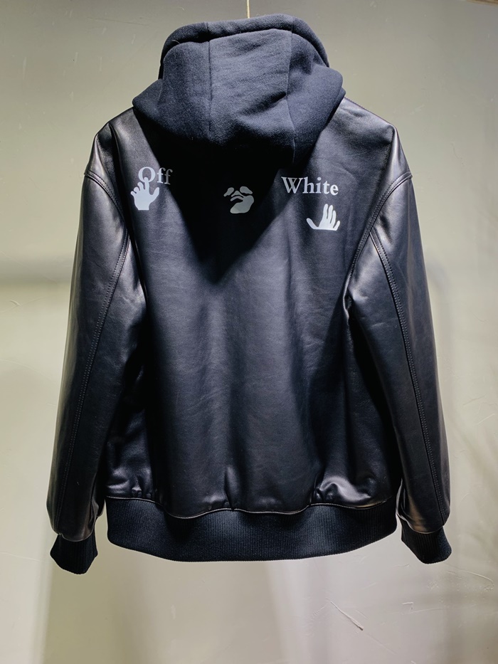 オフホワイトオフホワイトメンズカジュアルレザージャケットf0587ブラック