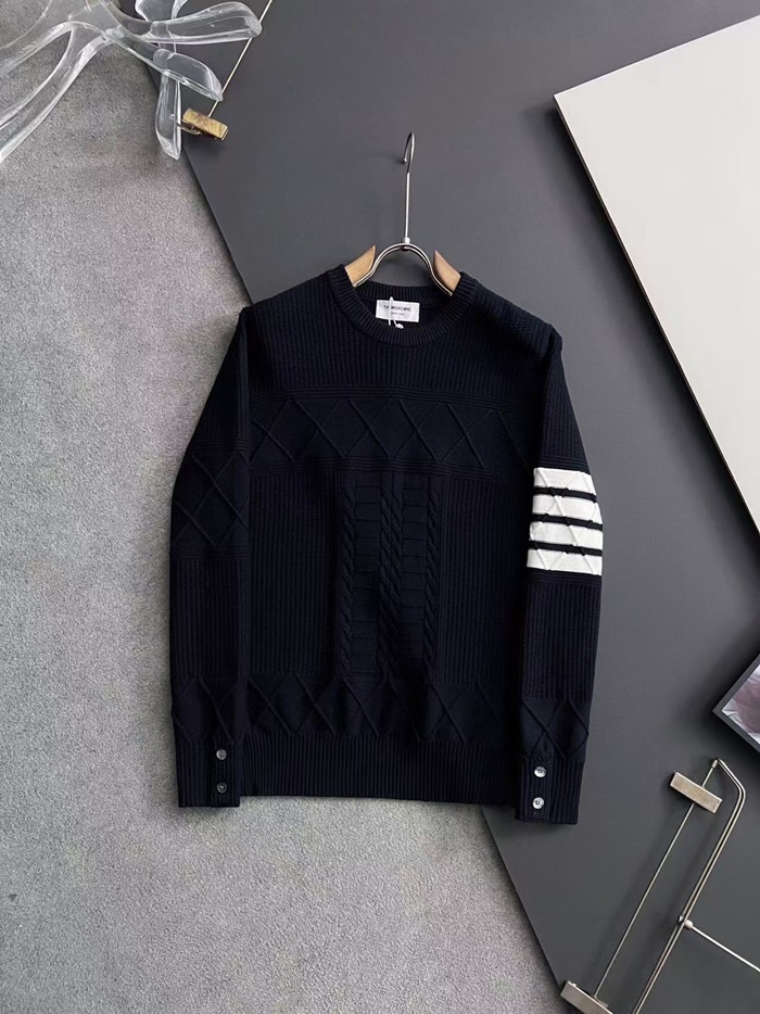 トムブラウン-トムブラウンメンズストラップクルーネックセーターm01065ブラック