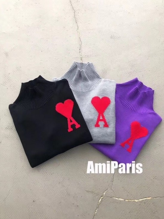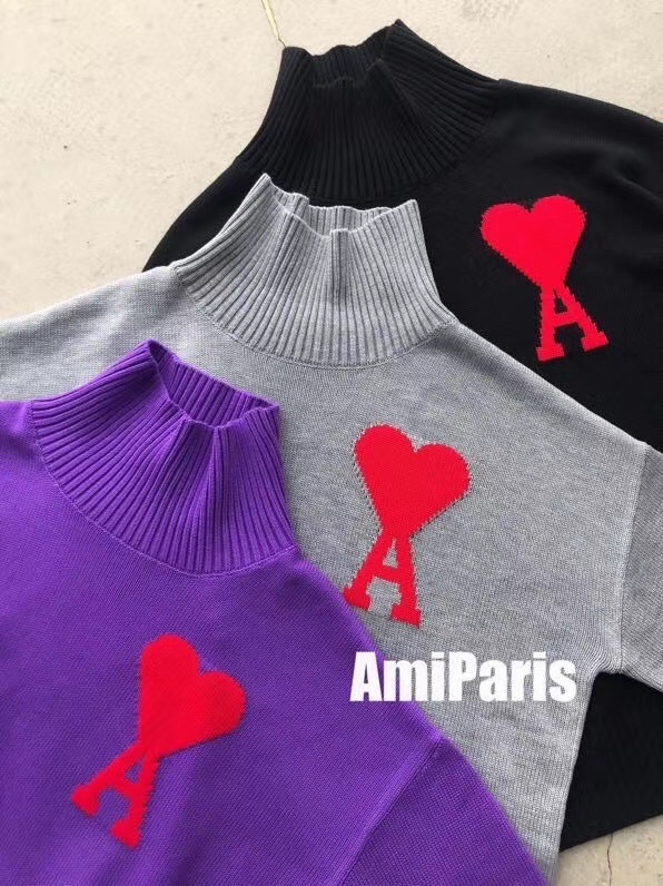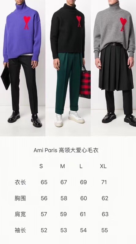 アミ-アミメンズカジュアルタートルネックセーター0054ブラック