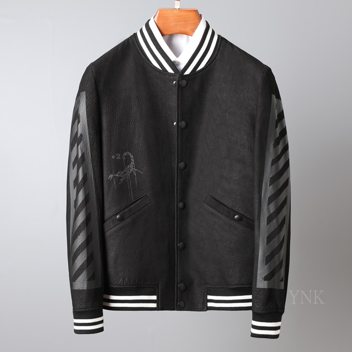 オフホワイトオフホワイトメンズカジュアルレザージャケットf0595ブラック