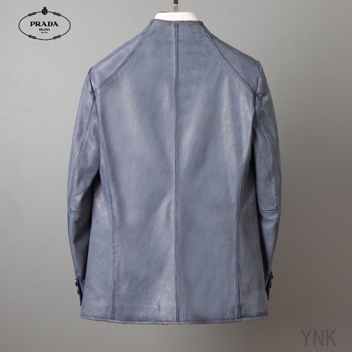 プラダメンズカジュアルレザージャケットa01173ブルー