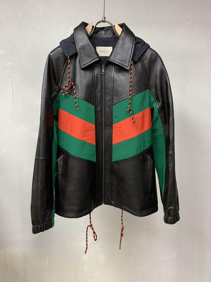 グッチグッチメンズクラシックカジュアルレザージャケットc03159ブラック