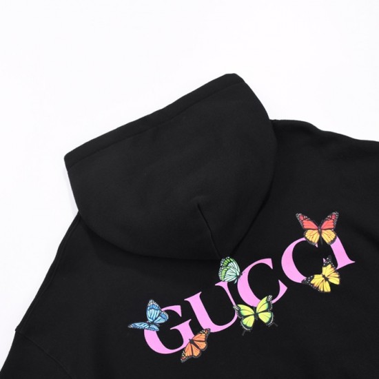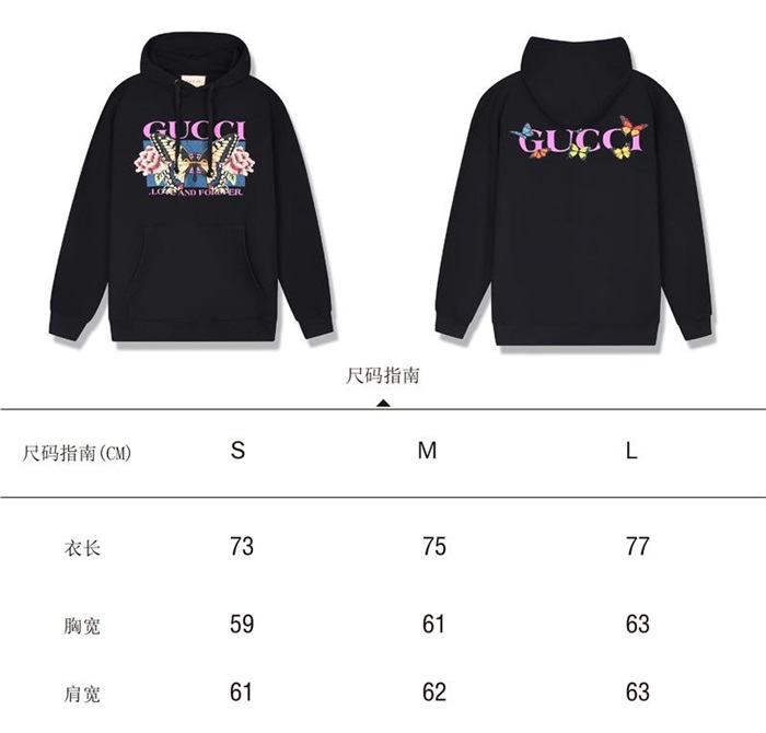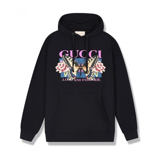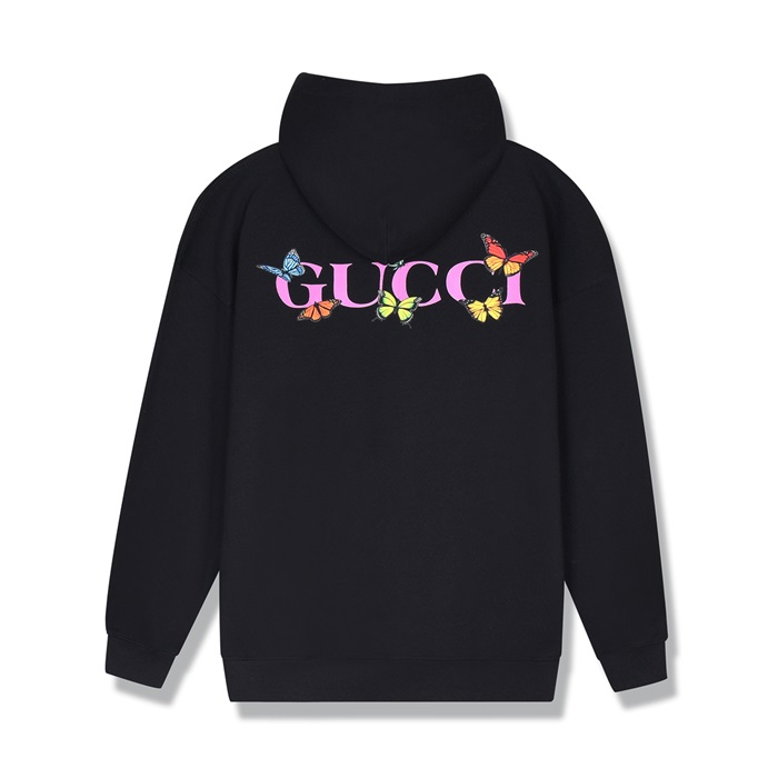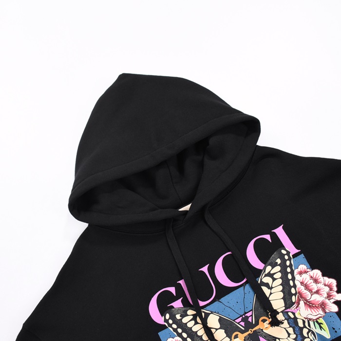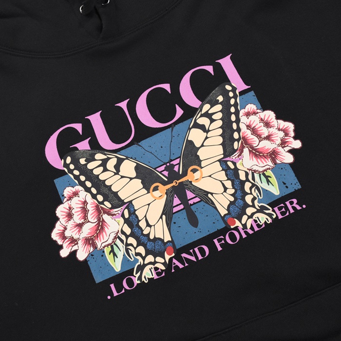 グッチグッチユニセックスカジュアルオーバーサイズコットンフーディc03167ブラック