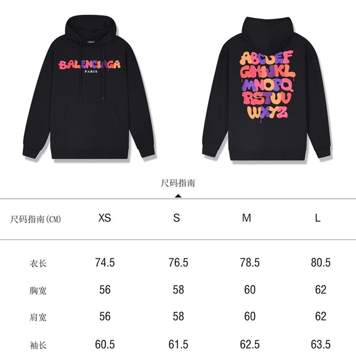 バレンシアガバレンシアガユニセックスコットンフーディl0855ブラック