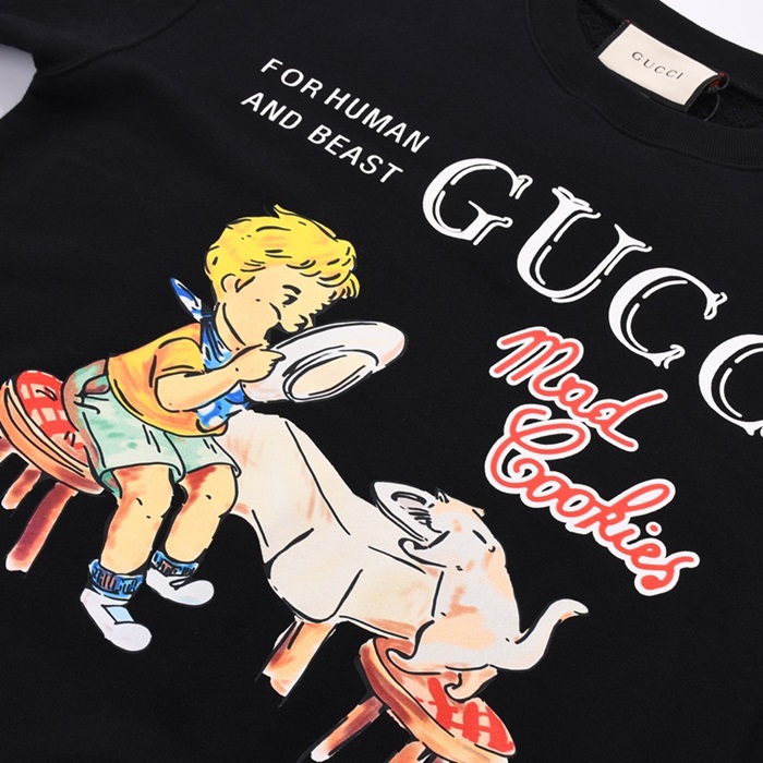 グッチ-グッチユニセックスコットンクルーネック長袖Tシャツc03178ブラック