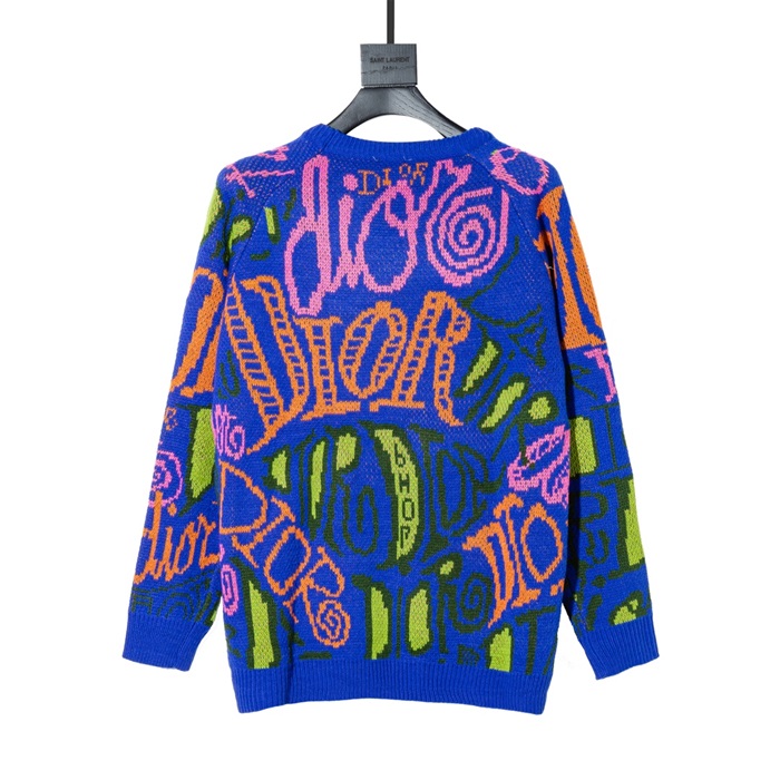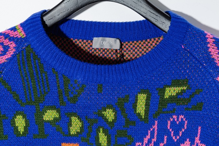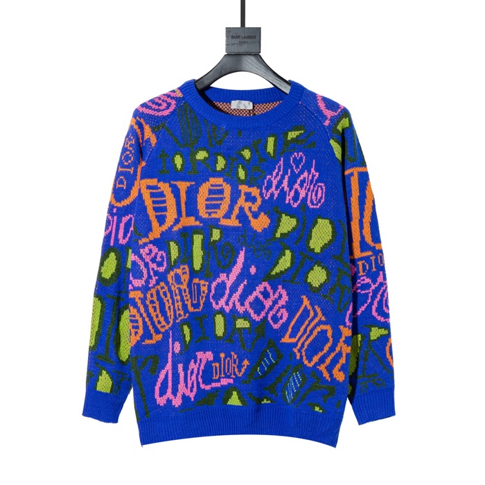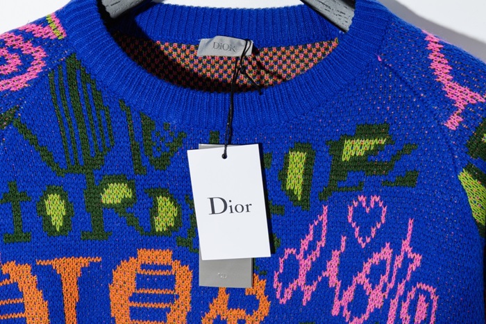-ディオールメンズレトロクルーネックセーターo0931ブルー