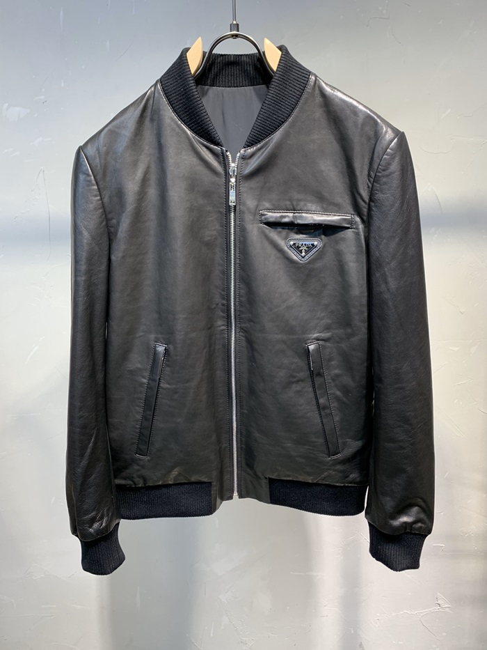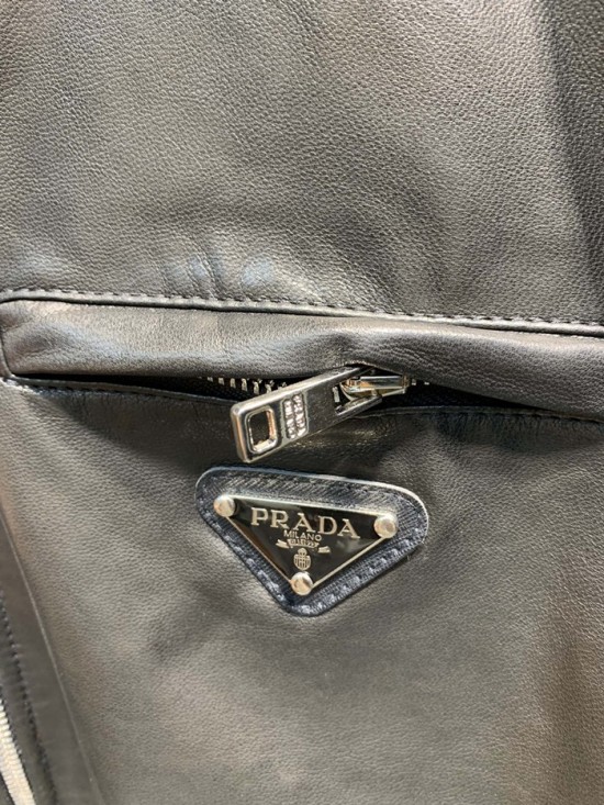 プラダメンズカジュアルレザージャケットa01180ブラック