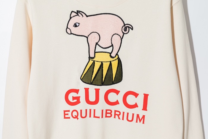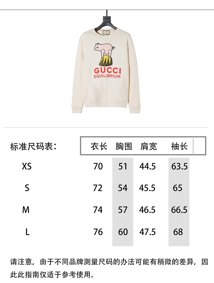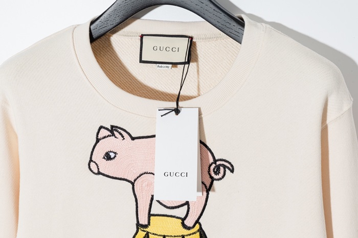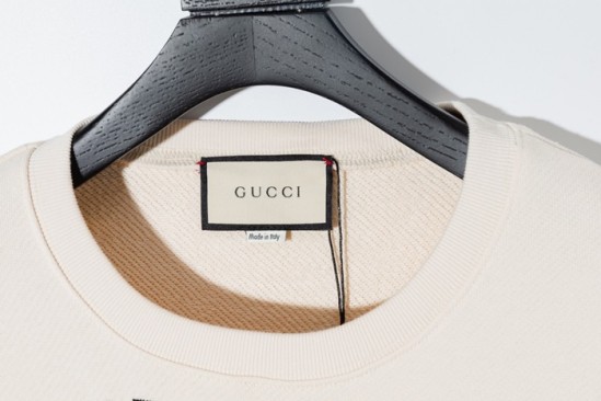 グッチ-グッチユニセックスコットンクルーネック長袖Tシャツc03188アイボリー