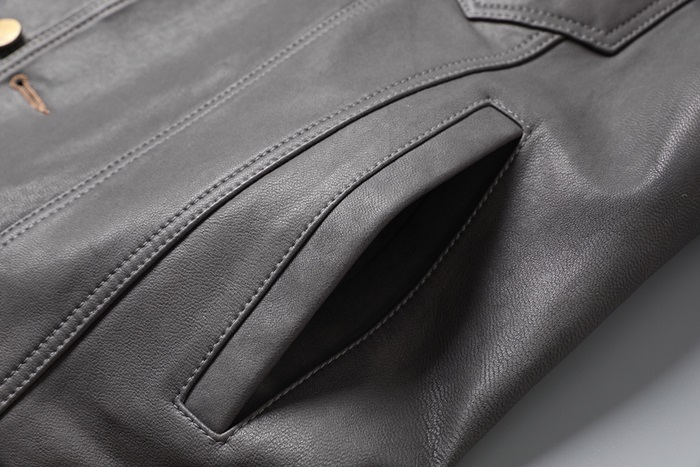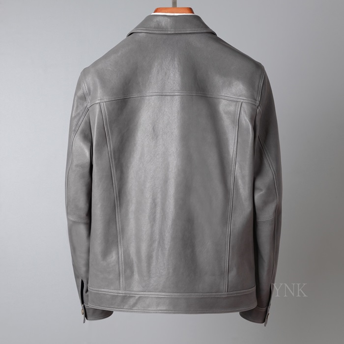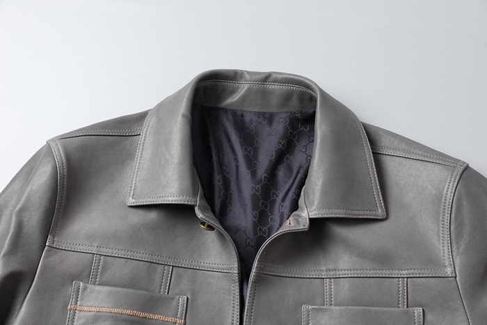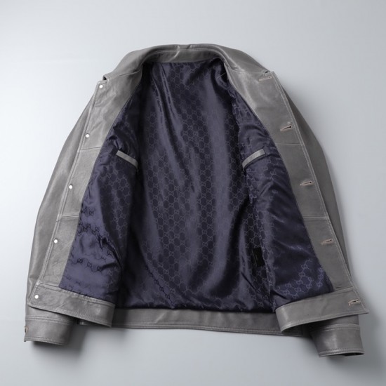 グッチグッチメンズクラシックカジュアルレザージャケットc03191グレー
