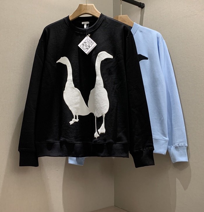 ロエベ-ロエベメンズクルーネック長袖Tシャツe0317ブルー