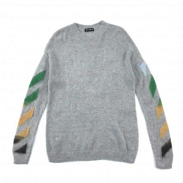 オフホワイトオフホワイトメンズブラッシュモヘアニットセーターf0602グレー