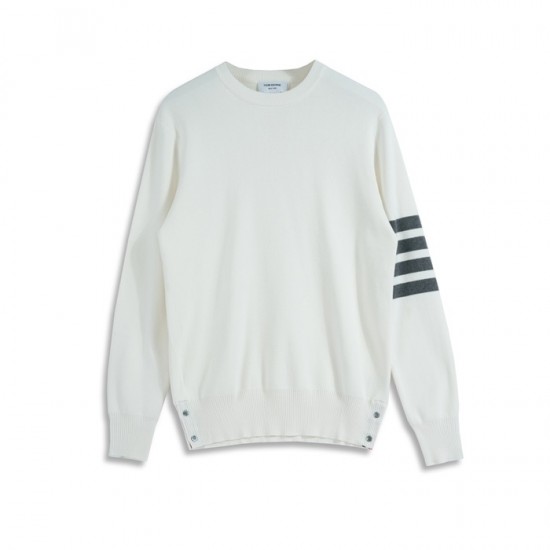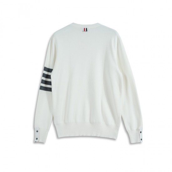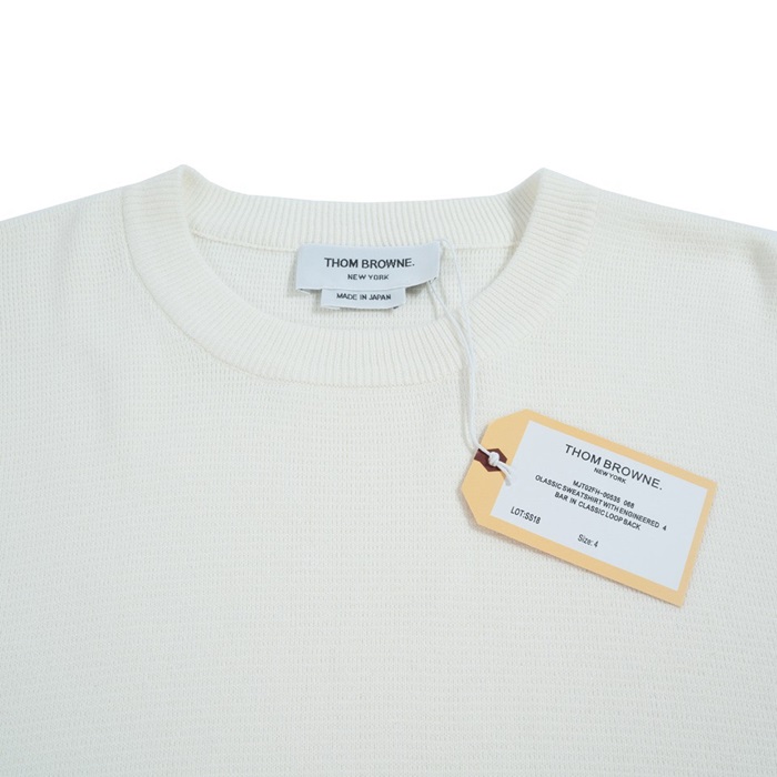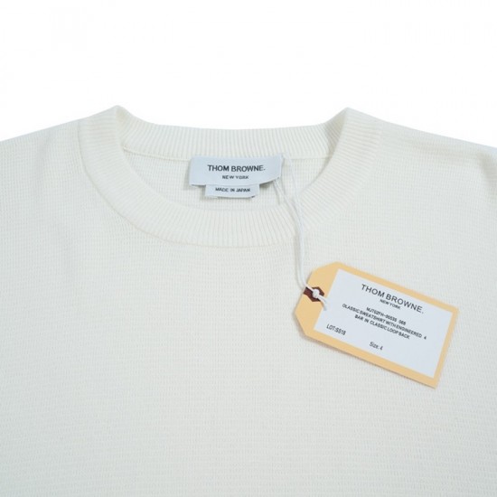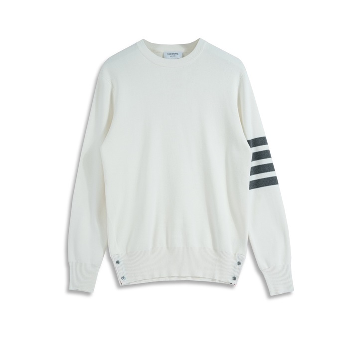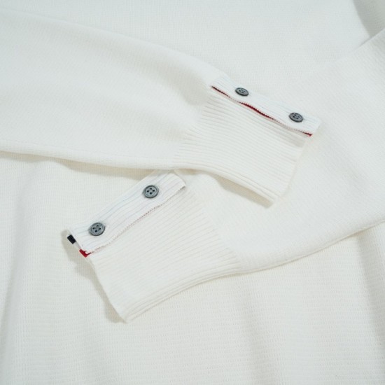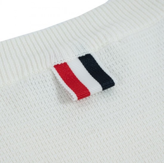 トムブラウン-トムブラウンユニセックスストラップクルーネックウールセーターm01105ホワイト