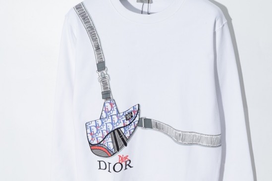 ディオールディオールメンズカジュアルコットン長袖Tシャツo0982ホワイト