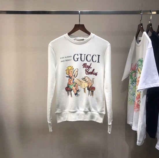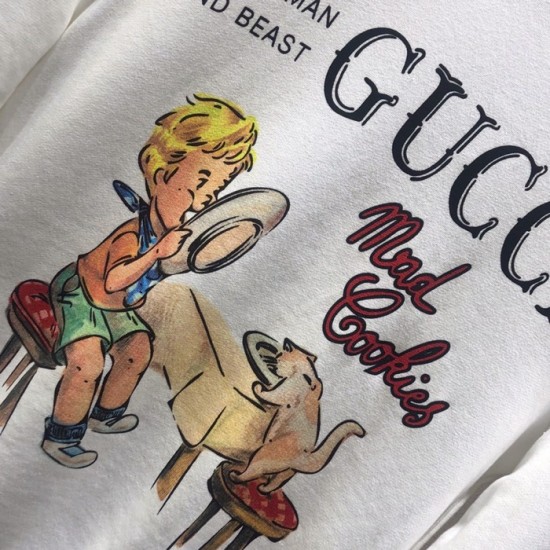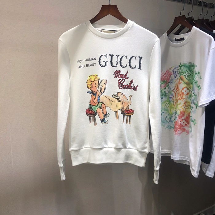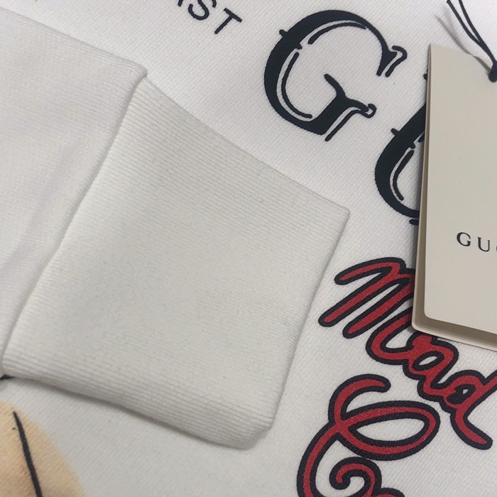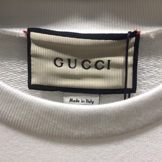 グッチ-グッチユニセックスコットンクルーネック長袖Tシャツc03237アイボリー