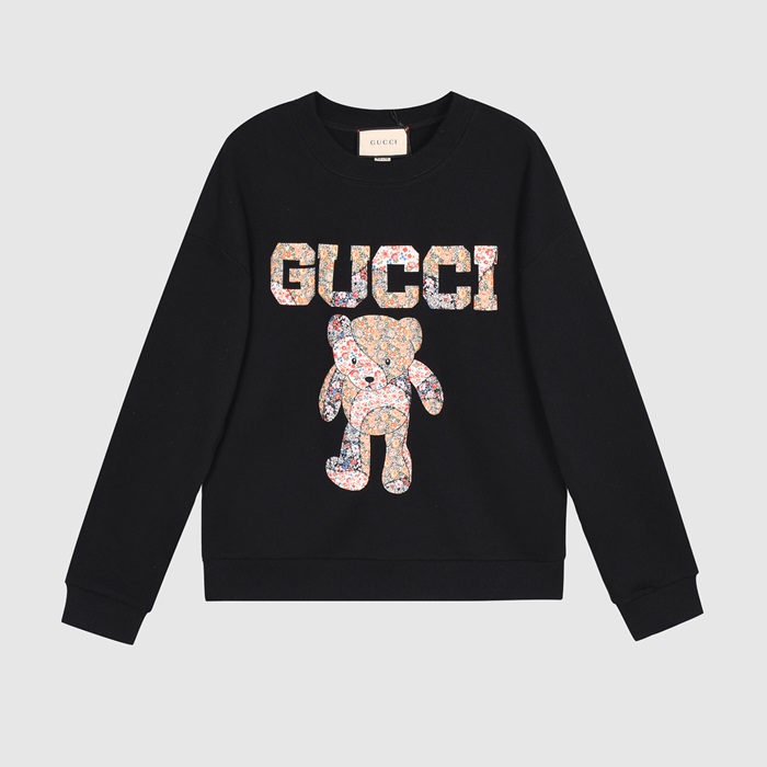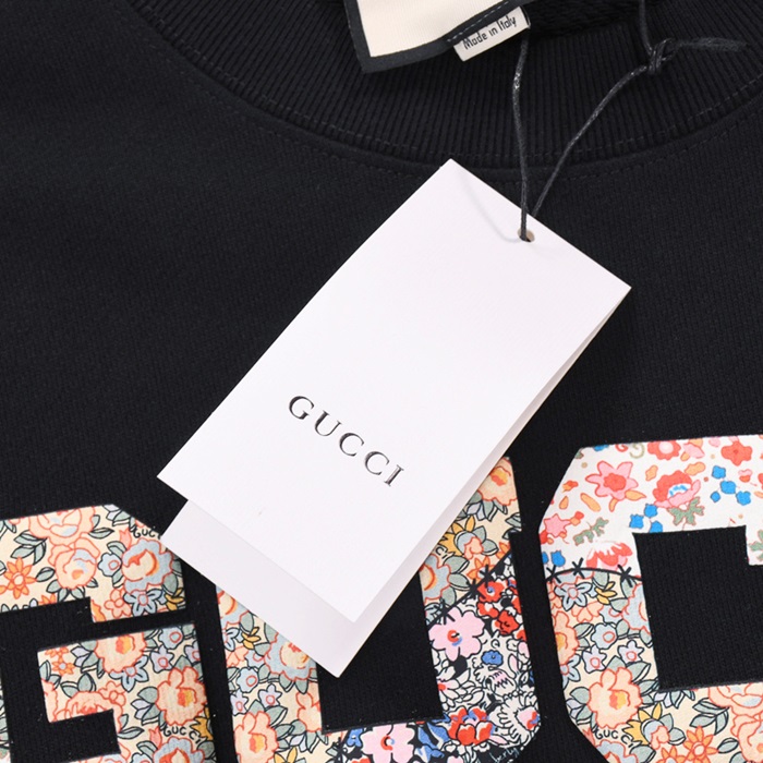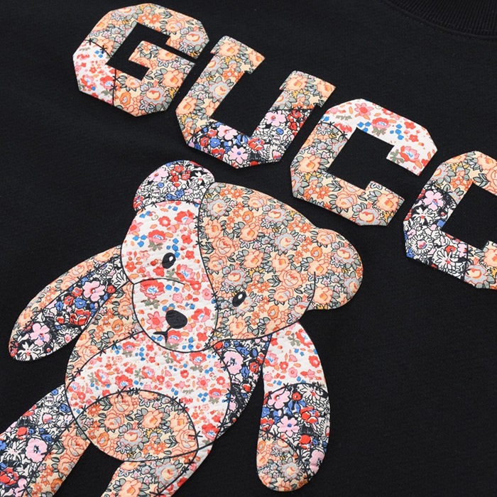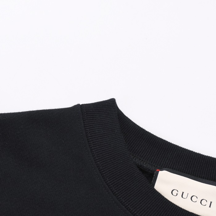 グッチ-グッチユニセックスコットンクルーネック長袖Tシャツc03239ブラック