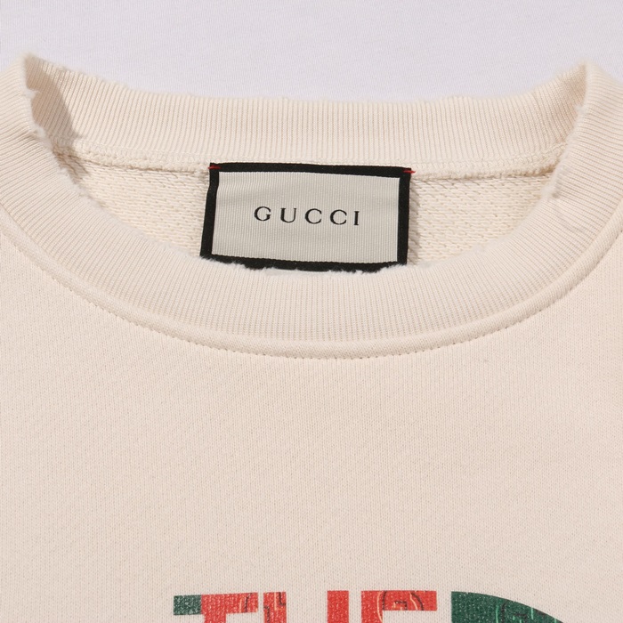 グッチ-グッチユニセックスコットンクルーネック長袖Tシャツc03248アイボリー