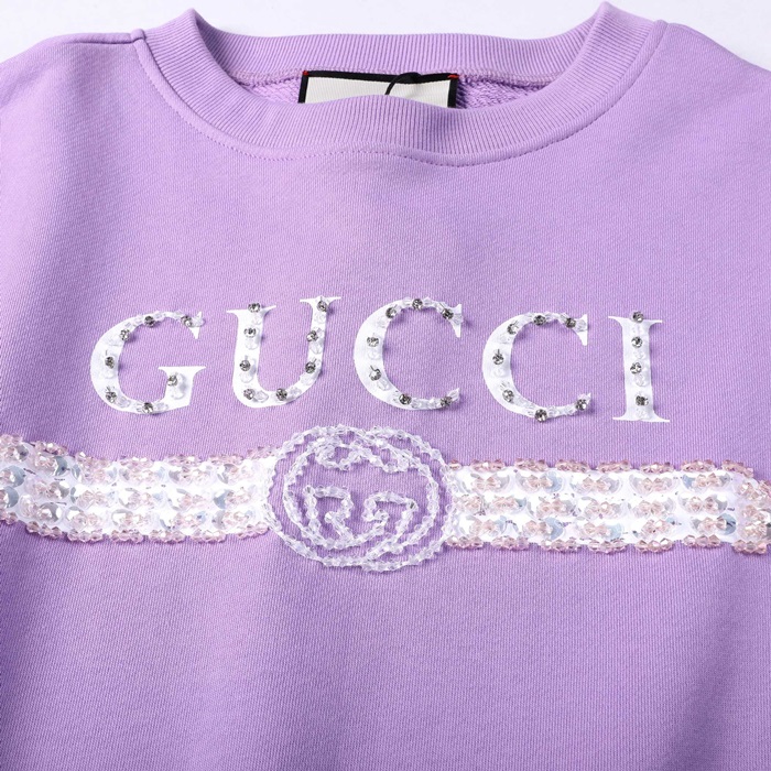 グッチ-グッチユニセックスコットンクルーネック長袖Tシャツc03262パープル