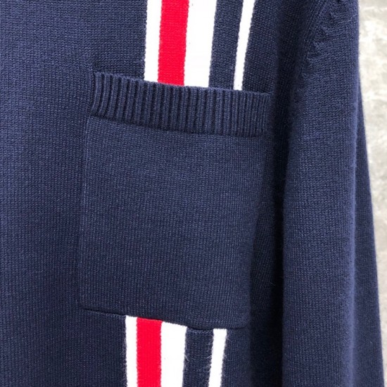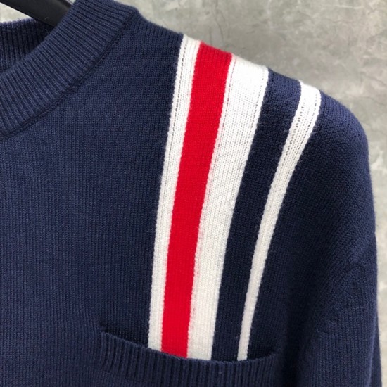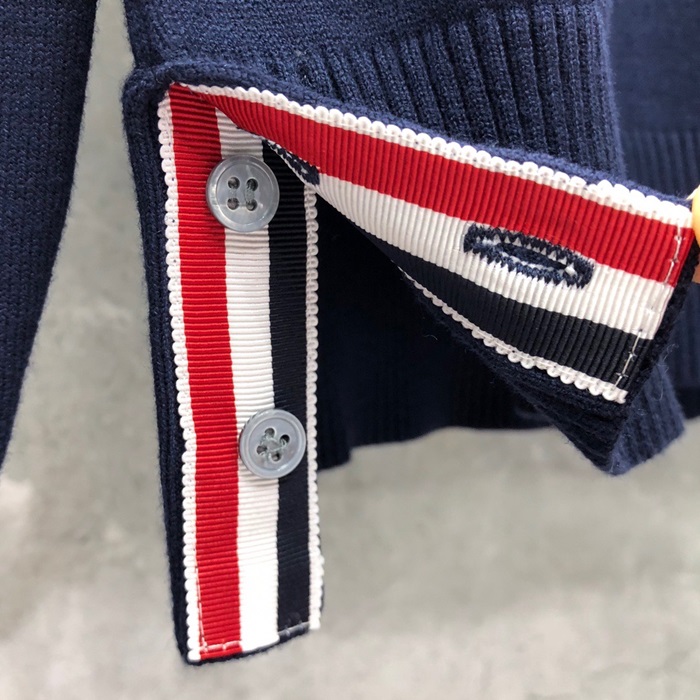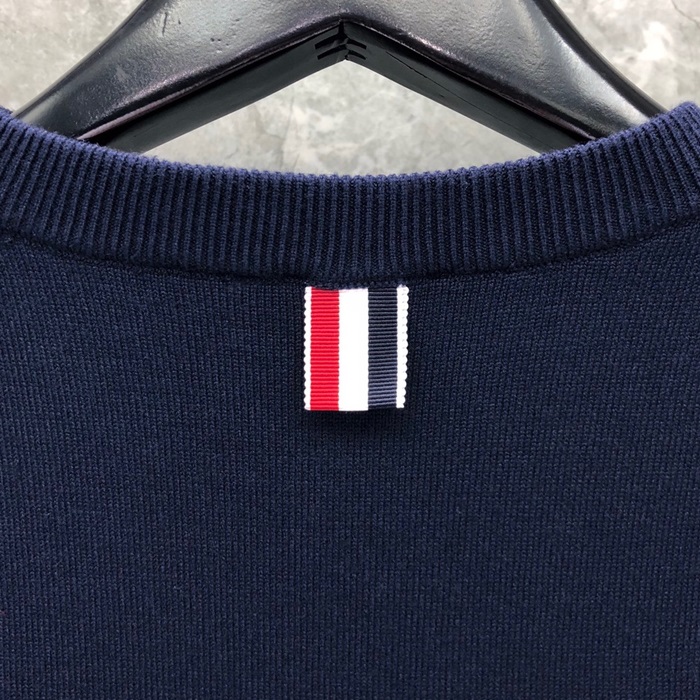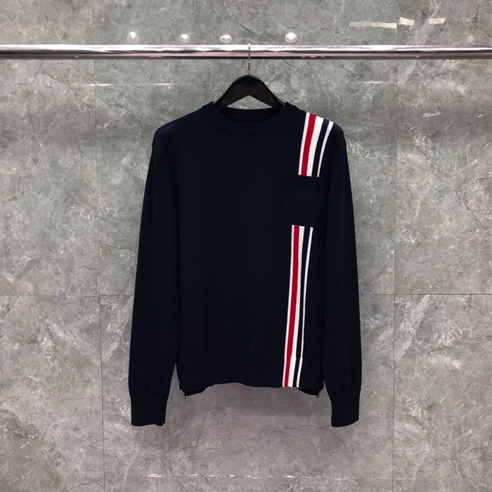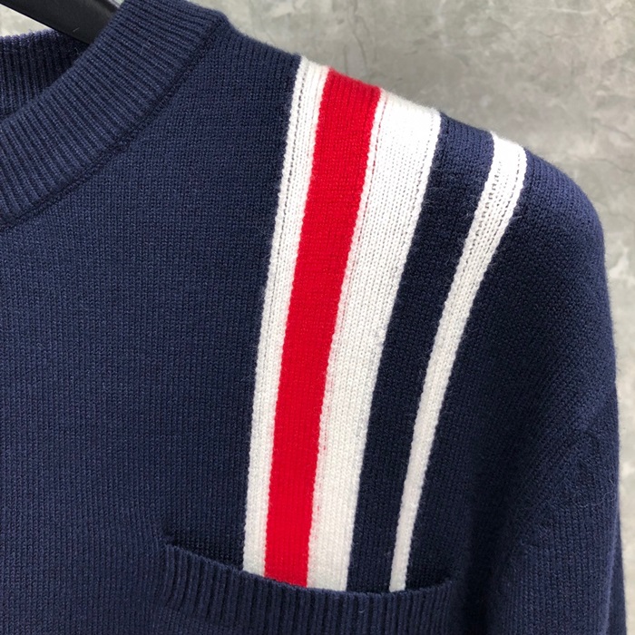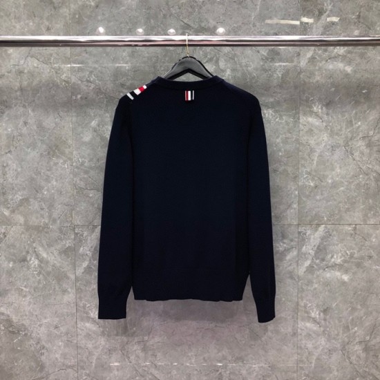 トムブラウン-トムブラウンメンズストラップクルーネックウールセーターm01131ネイビー