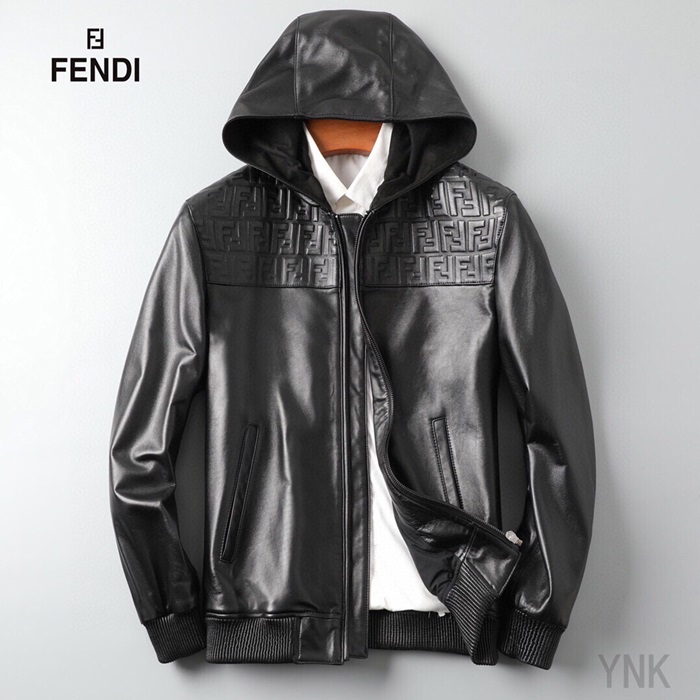 ェンディ-ェンディメンズカジュアルジップアップレザージャケットn0889ブラック