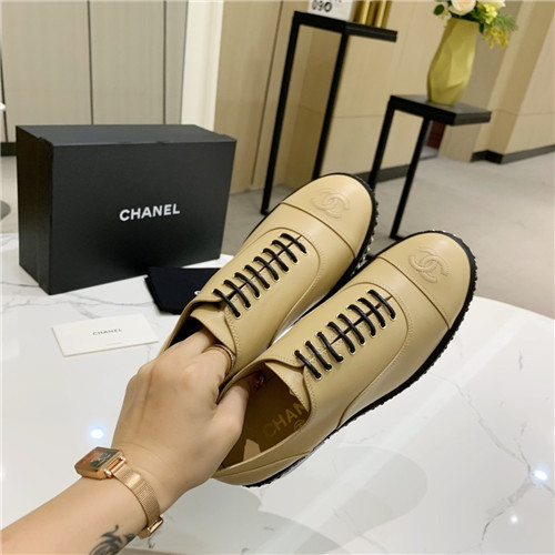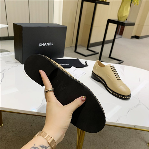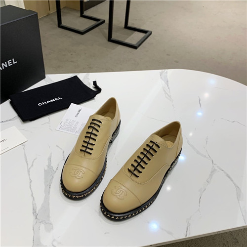 'シャネルレディースレザーオックスフォードシューズ,(225-250),S0510,ベージュ