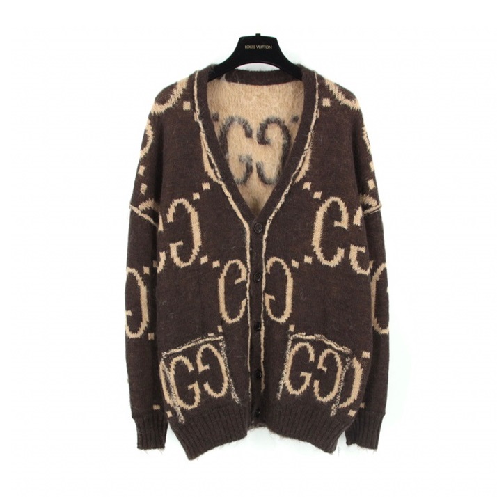 グッチレディーストレンディネックカーディガンc03280ブラウン