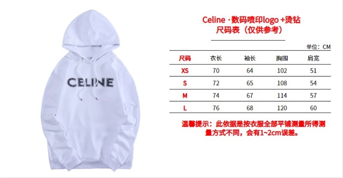 セリーヌユニセックスコットンフーディl0088ホワイト