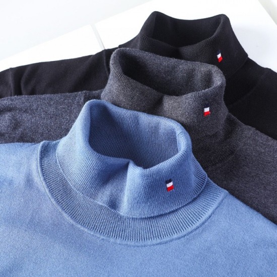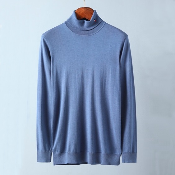 トムブラウン-トムブラウンメンズストラップタートルネックウールセーターm01144ブルー