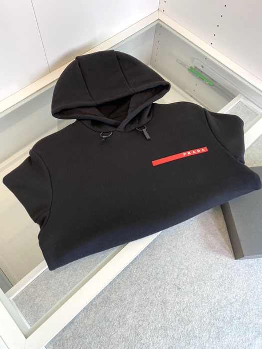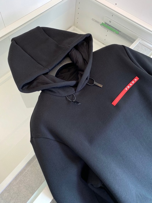 プラダプラダメンズカジュアルコットンフーディa012252(ブラック/ホワイト)