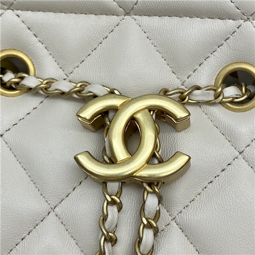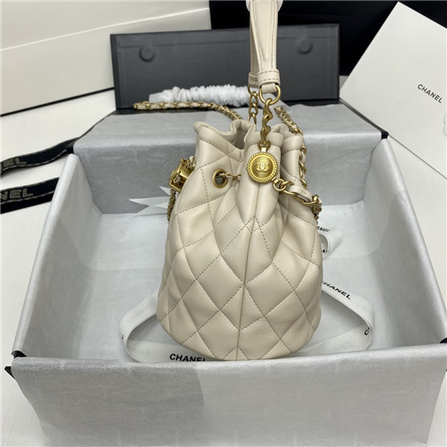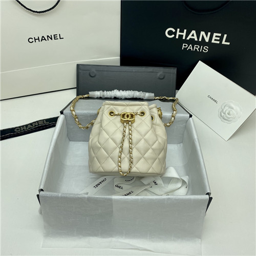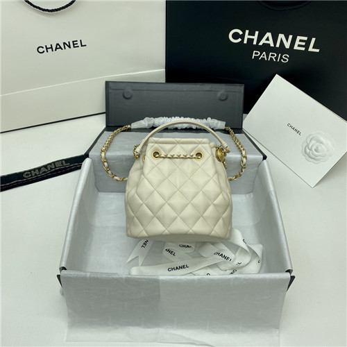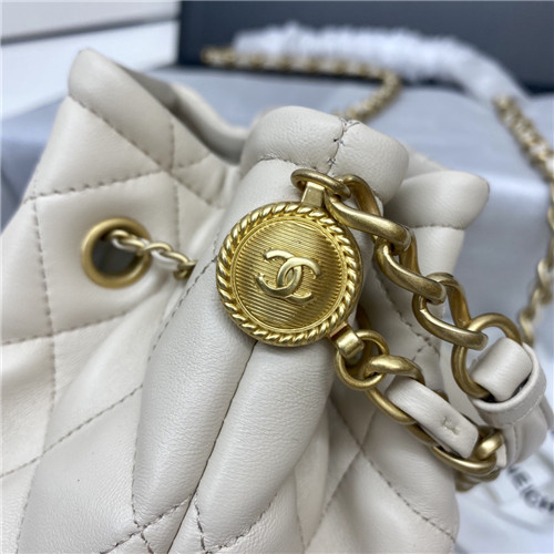 シャネルシャネルレザーバケットバッグ,B1608,ホワイト