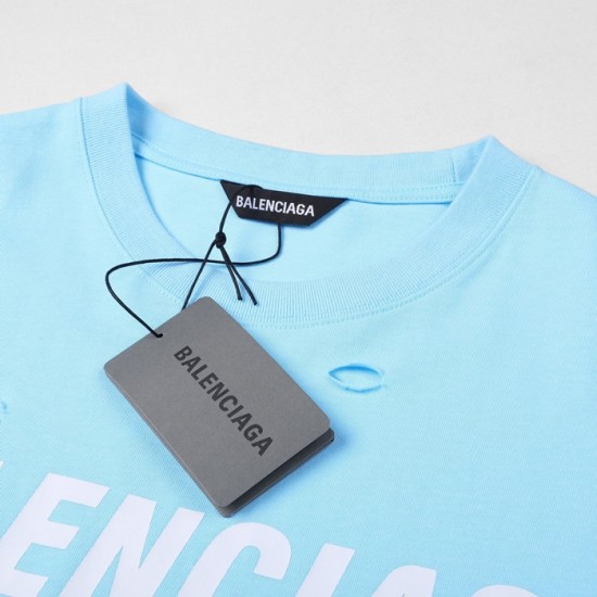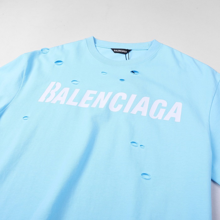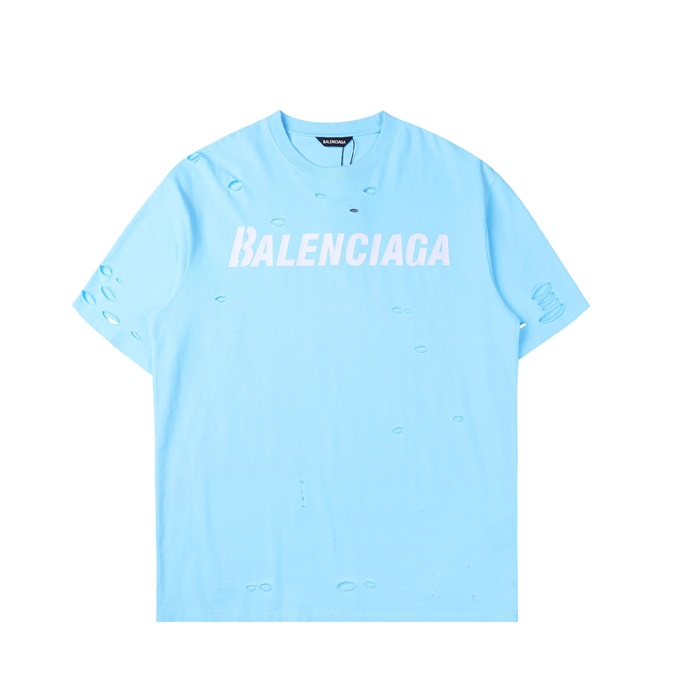 バレンシアガユニセックスコットン半袖Tシャツl0911ブルー