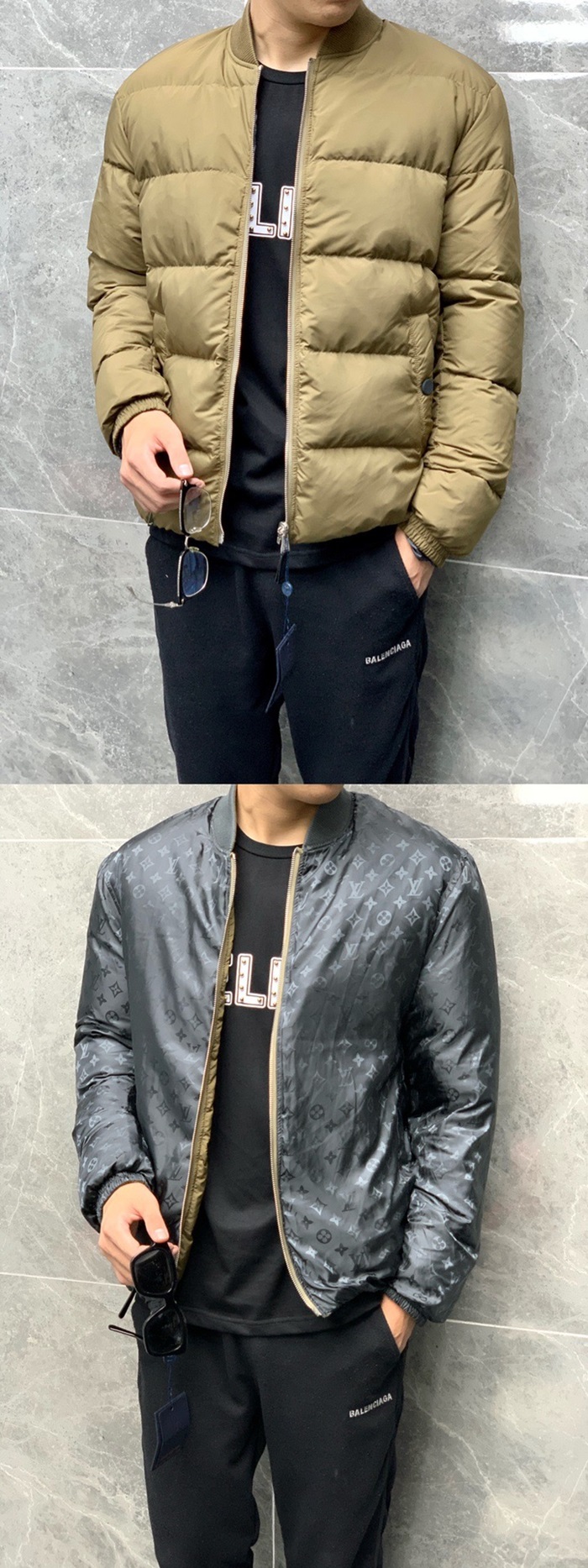 ルイヴィトンメンズダウン両面パディングu02534カーキ