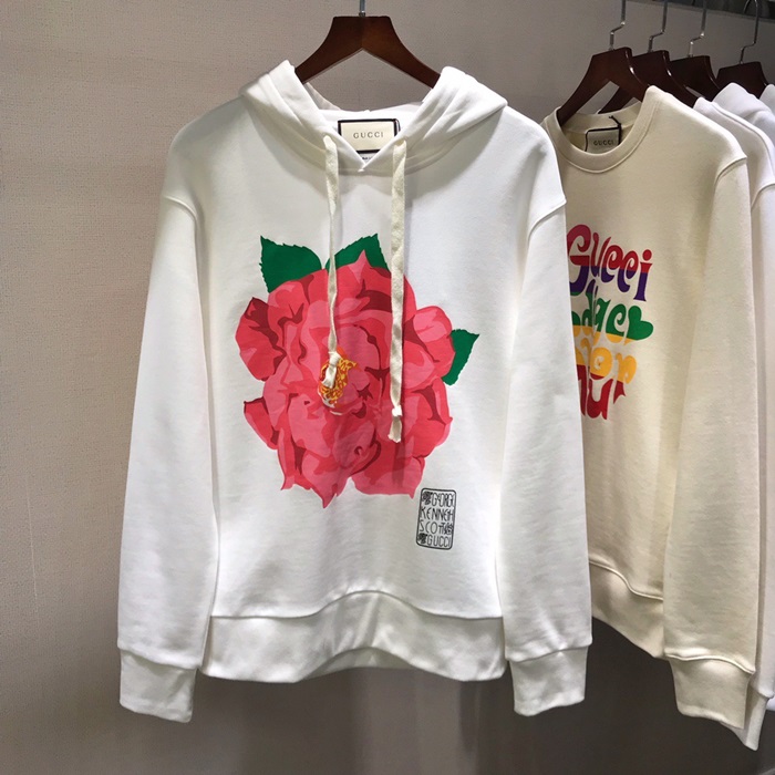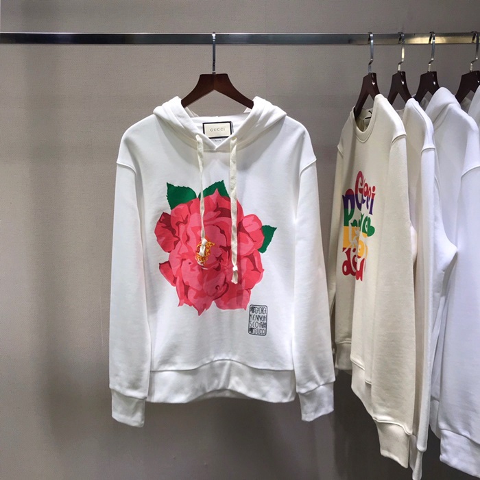 グッチグッチユニセックスカジュアルオーバーサイズコットンフーディc03325ホワイト